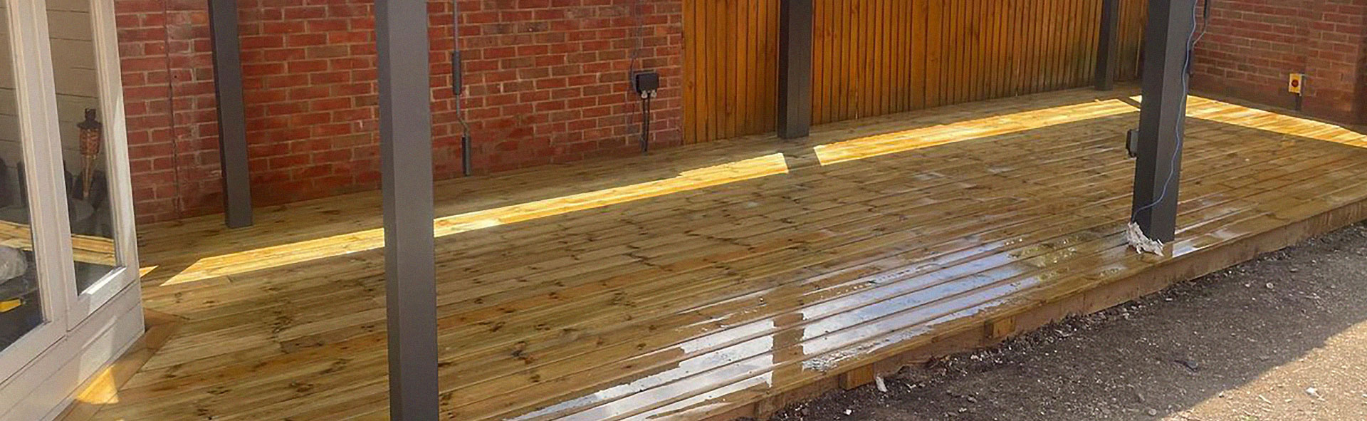 Timber decking benefits from annual cleaning to remove dirt, debris, and any algae growth. Specialist decking cleaners restore appearance effectively. Following cleaning, apply quality decking oil or stain to protect timber and maintain colour.